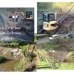 Also musste schweres Gerät her um einen Graben in Richtung Weiher zu baggern. Dabei wurden dann auch die Wasserflächen vergrößert, stehendes Wasser wurde geschaffen, ein Damm wurde aufgeschüttet und eine Insel wurde angelegt. Am Übergang zum eigentlichen Weiher wurde eine Steinmauer aufgeschüttet, die verhindern soll, dass Schlamm in den Weiher gelangt und Fische vom Weiher in die Laichzonen der Amphibien gelangen können.