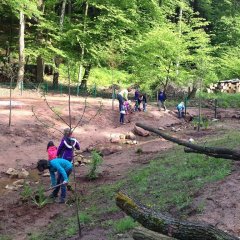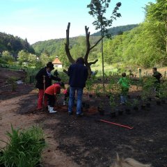 Dank der guten Vorbereitung und der Hilfe der Gartenbaufirma Edinger konnten zusammen mit den Schillern, Lehrkräften und unserem Ortsbürgermeister zusammen mit der Grundschule alle Pflanzen gesetzt werden. Ein besonderer Dank gilt der Fielmann Stiftung, die komplett alle Pflanzen bezahlt hat.