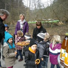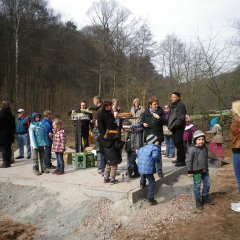 Eine der ersten gemeinsamen Aktionen war mit unserem Kindergarten St. Cyriakus und unserem Sponsor, der Firma Heidelberger Zement. Die Kindergartenkinder unternahmen einen Spaziergang zum Waldspielplatz, um sich in den Seilbahnfundamenten mit einem Händeabdruck zu verewigen. Die Kinder hatten ihren Spaß und waren von den Eindrücken des neuen Spielplatzes begeistert.